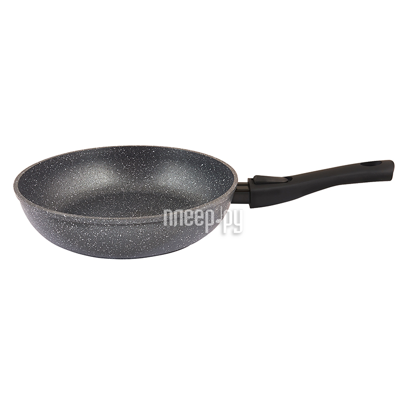 Глубокая вместительная сковорода 260 мм с увеличенной рабочей площадью. 6-слойное антипригарное покрытие. Наружное декоративное термостойкое покрытие. Бакелитовая несъемная ручка с покрытием soft-touch.