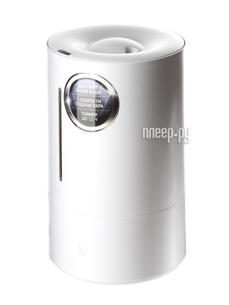 Ультрафиолетовый, мощность 25 Вт. 3 режима подачи пара. Площадь распределения влаги 35 м2, расход воды 350 мл/ч. Непрерывное время работы до 24 ч. Залив воды сверху. Таймер автоотключения, ночной режим, сенсорная панель, электронный гигрометр.