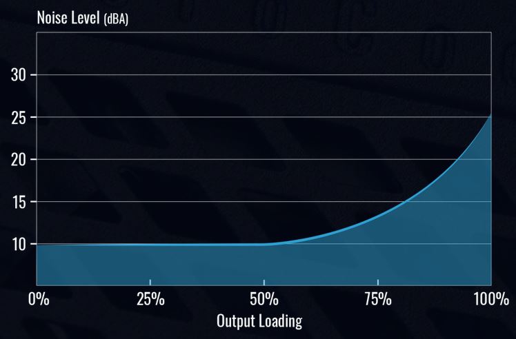 | УЛУЧШЕННЫЙ КОНТРОЛЬ СКОРОСТИ ВРАЩЕНИЯ ВЕНТИЛЯТОРА Эффективное управление скоростью вращения вентилятора позволяет обеспечить практически бесшумную работу блока питания. Интеллектуальная система управления скоростью сохраняет минимальные обороты до достижения уровня нагрузки в 60% при температуре среды в 40 °C. |