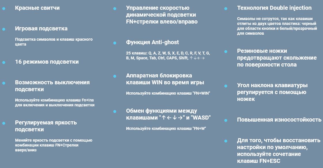 | Механическая клавиатура Quest GK-596 Полноразмерная удобная игровая клавиатура с яркой красной подсветкой. Клавиши оснащены красными свитчами, что гарантирует быстрый и точный отклик на нажатия. Функция anti-ghosting позволяет одновременно нажимать несколько клавиш без блокировки, для более точного и плавного управления во время игры. |