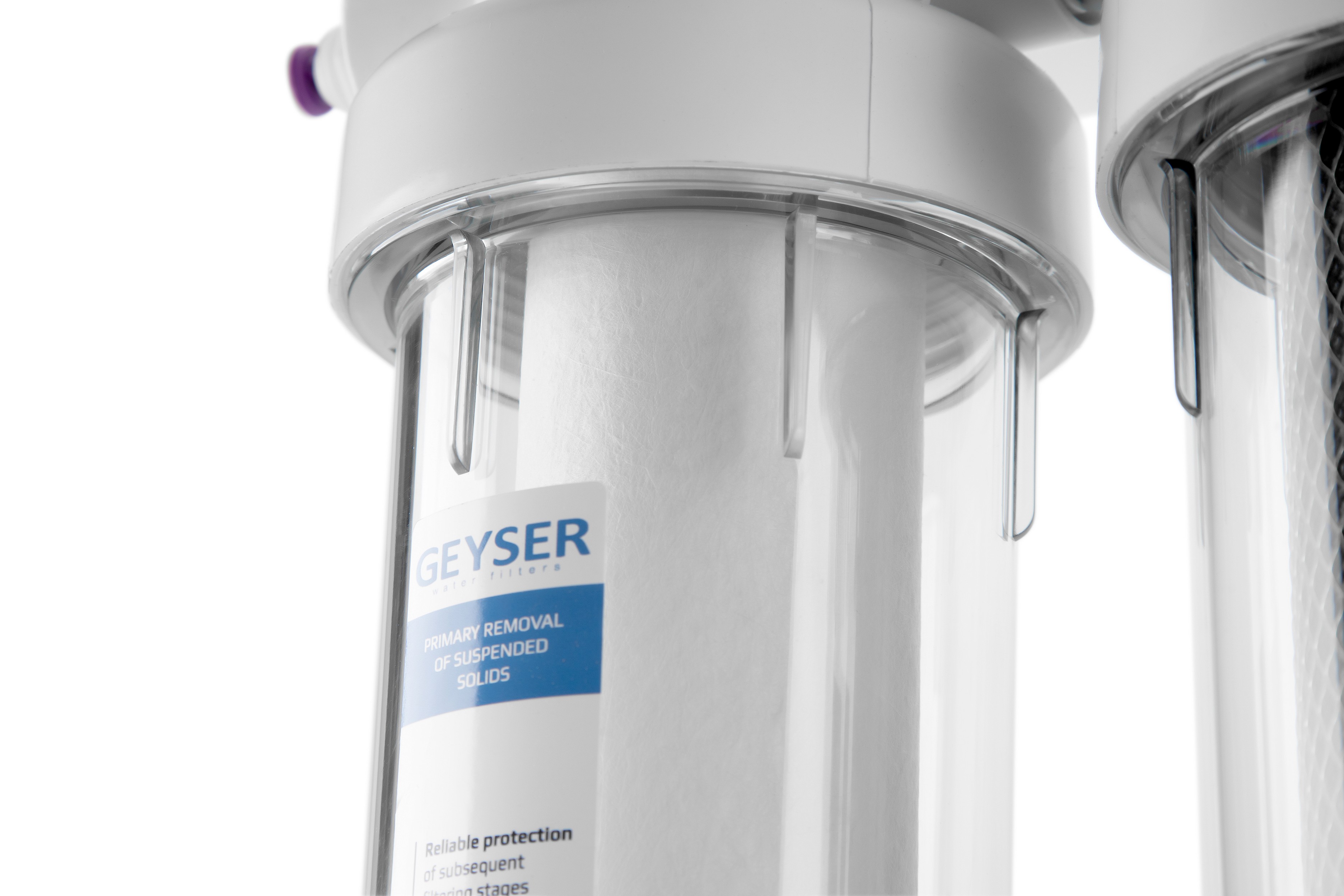 Этапы очистки воды системой обратного осмоса Гейзер Премиум-П: - Механический картридж из вспененного полипропилена (РР) – очищает воду от грязи, взвешенных частиц и нерастворимых примесей размером более 5 мкм. Ресурс картриджа – до 20000 л*, срок службы составляет 12 месяцев*.