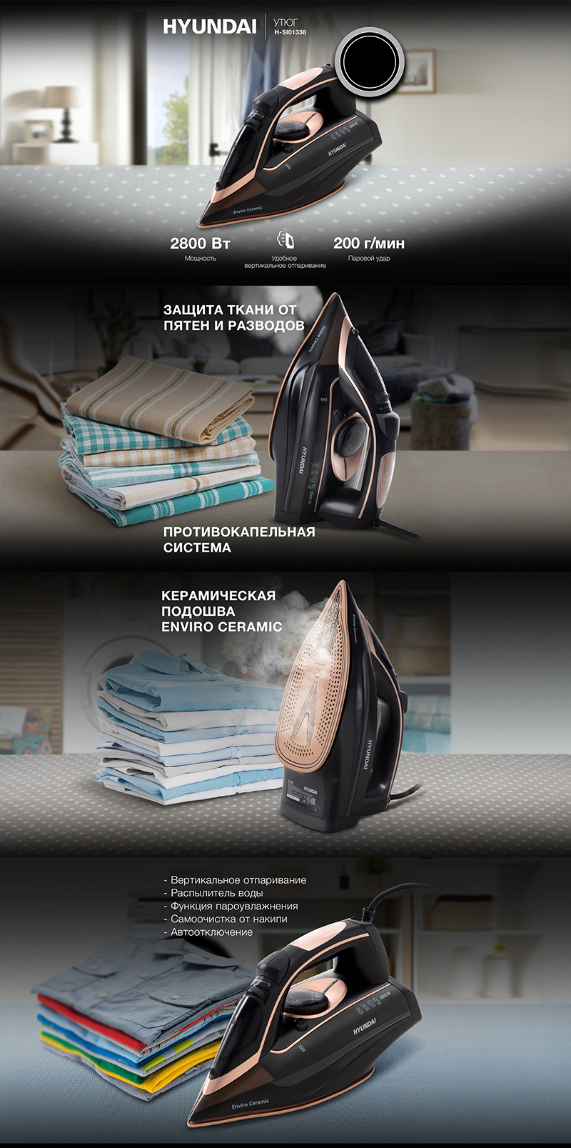 Электрический утюг Hyundai H-SI01338 обладает всеми необходимыми функциями для быстрого и эффективного проглаживания одежды.