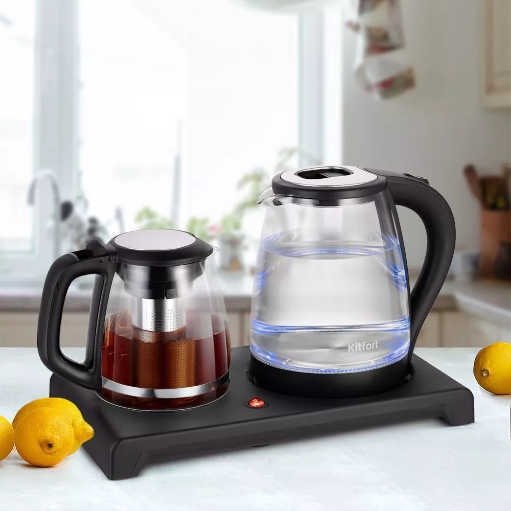 Я чайный гуру! Стильный и функциональный чайный набор Kitfort КТ-6179 состоит из чайника ёмкостью 2 л, кувшина с фильтром для заварки ёмкостью 1,2 л и базы. Набор поможет вам не только вскипятить воду, но и заварить чай или кофе.