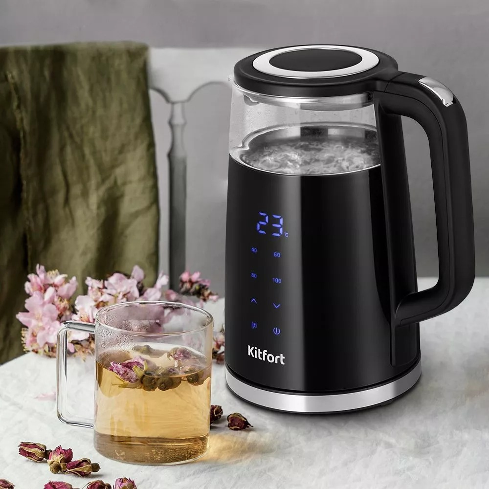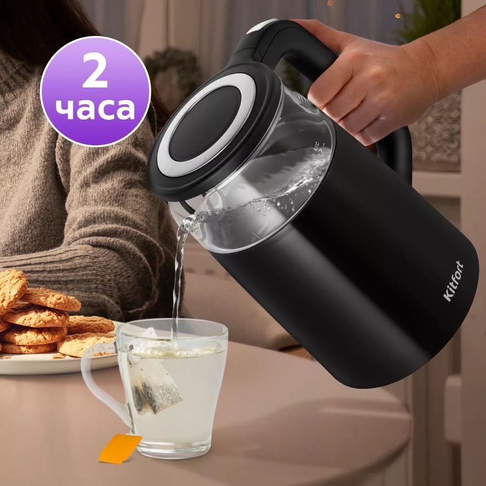 Для ваших любимых горячих напитков! Электрический чайник Kitfort КТ-6611 может не только вскипятить воду, но и нагреть её до температуры от 40 до 95°C. Ёмкость чайника 1,7 литров: этого хватит, чтобы приготовить горячие напитки на большую семью.