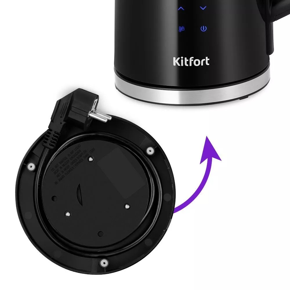 Ничего лишнего Подставка с центральным контактом даёт возможность располагать на ней чайник в любом положении, обеспечивая вращение на 360°. На дне подставки имеется отсек для хранения шнура, чтобы излишки шнура не мешали на столе.