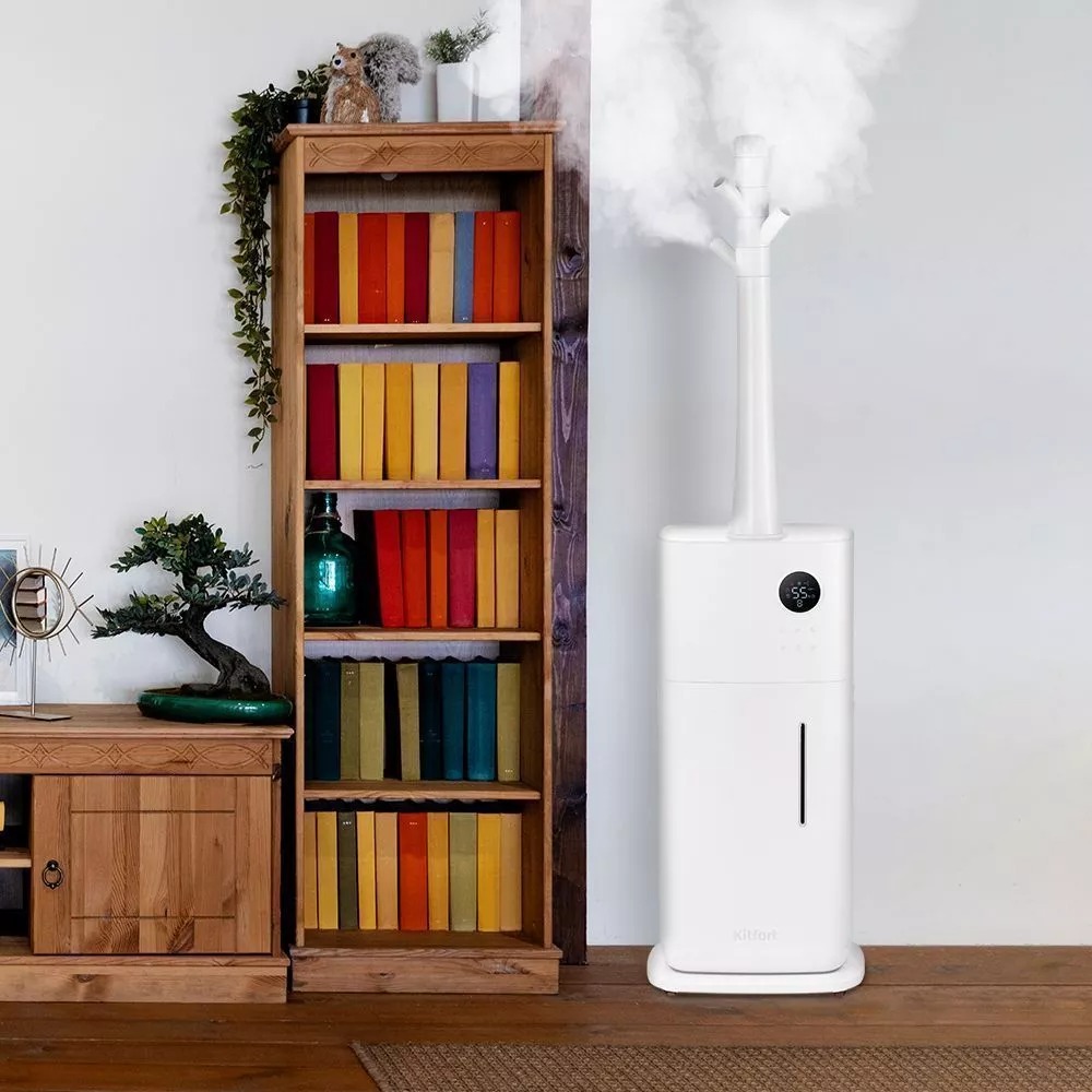 Сплошные преимущества Увлажнитель безопасен, так как паром невозможно обжечься, также он потребляет мало энергии при высокой производительности. Для нормального самочувствия человека относительная влажность воздуха в жилых помещениях должна быть от 45% до 65%.
