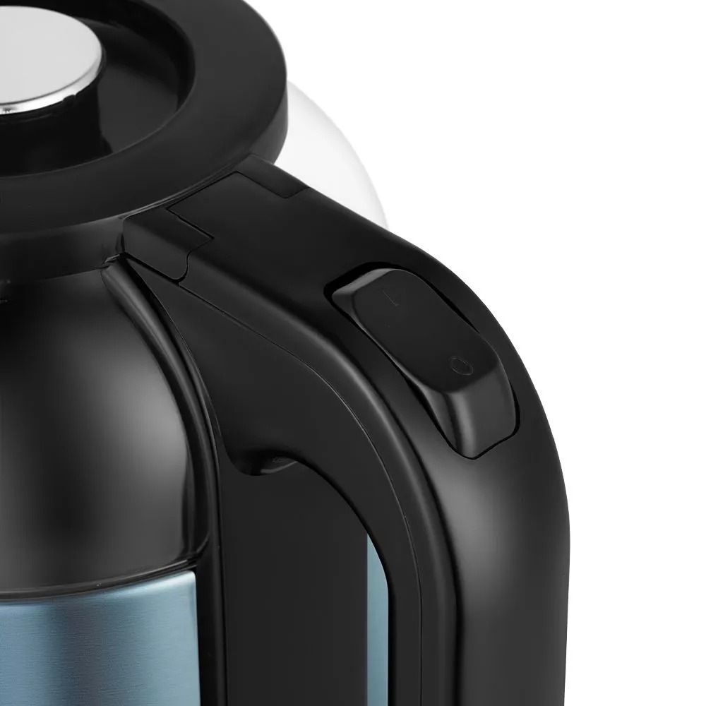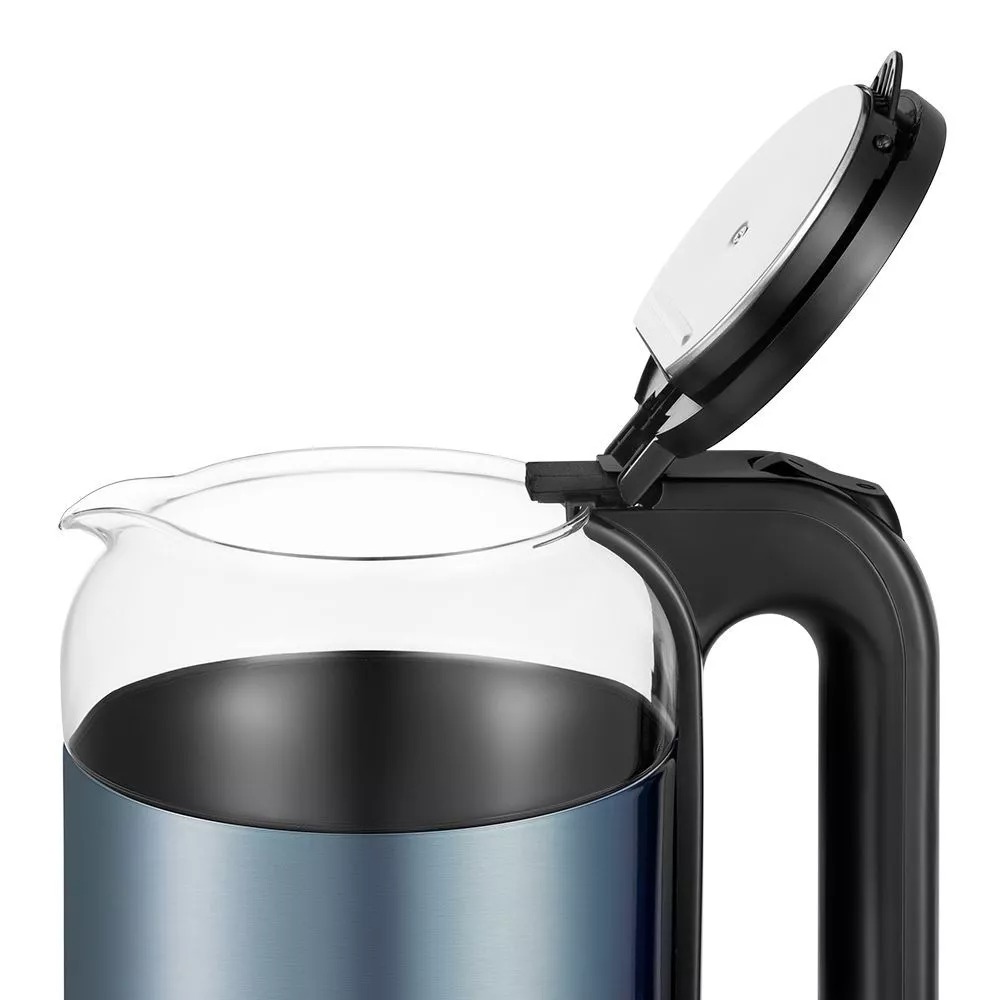 Удобное управление Корпус чайника выполнен из сочетания стекла, нержавеющей стали и пластика, а крышка — из нержавеющей стали и пластика. Максимальная и минимальная отметки нанесены на внутреннюю часть корпуса. Ручка чайника пластиковая, не нагревается и удобно лежит в руке