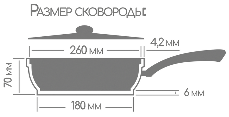 Антипригарная сковорода имеет толстые стенки и утолщенное дно, что способствует равномерному распределению тепла и создает благоприятные условия для качественного процесса готовки. Антипригарное покрытие на водной основе не содержит вредных химических соединений. Посуда металлическая имеет гладкую поверхность, что облегчает процесс мытья. Сковорода со съёмной ручкой применяется в духовом шкафу. Ручка для сковороды из бакелита не нагревается и не выскальзывает из рук. |