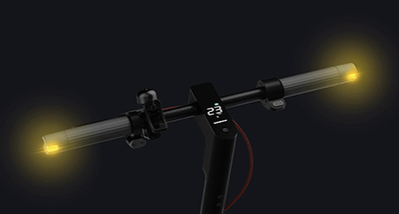 Приборная панель Приборная панель, расположенная на руле, отображает скорость, оставшийся заряд батареи, сигналы поворота и состояние скутера во время поездки. |  |