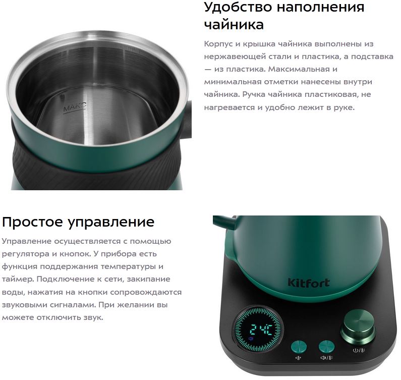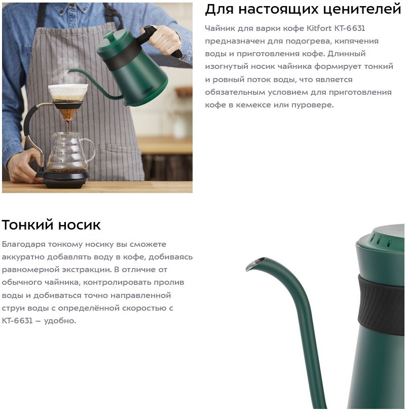Чайник для варки кофе Kitfort 800ml KT-6631 [Перейти в каталог этих товаров]