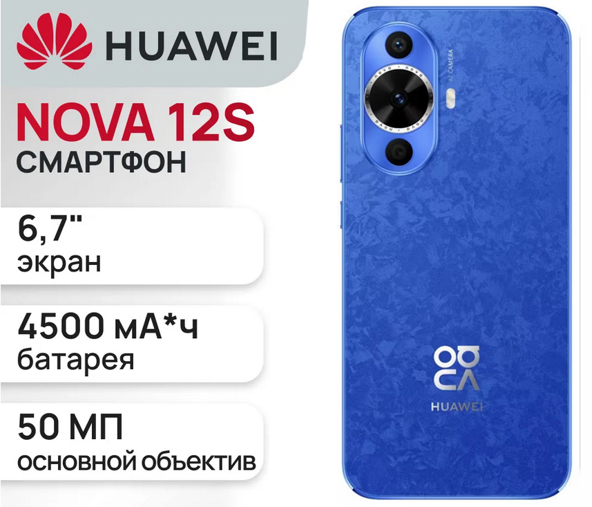 Сотовый телефон Huawei Nova 12s 8/256Gb Blue [Перейти в каталог этих товаров]