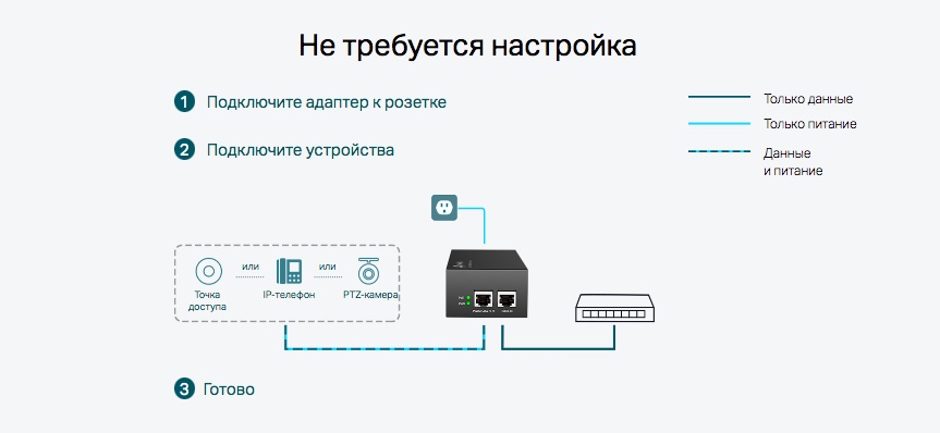 Автоматическое определение мощности, требуемой для питания подключённого устройства.