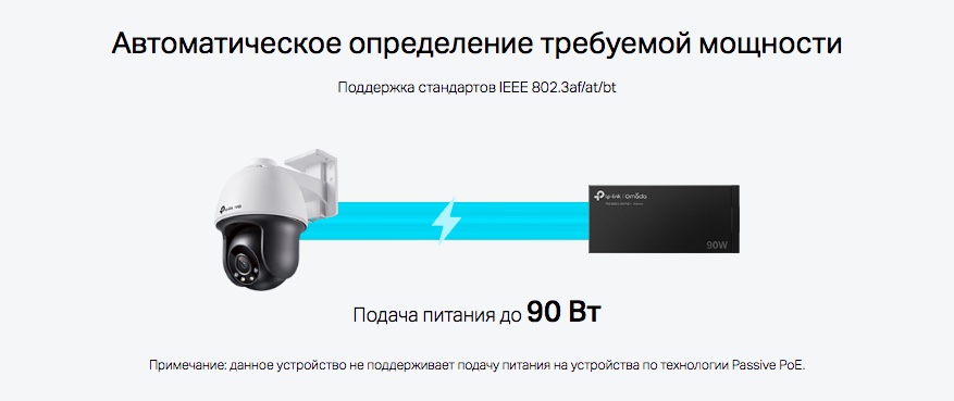 Поддержка стандартов IEEE 802.3af/at/bt с бюджетом PoE до 90 Вт.