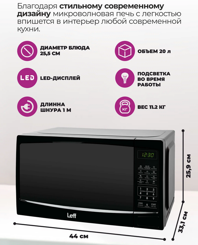 Микроволновая печь Leff 20MD733BG [Перейти в каталог этих товаров]