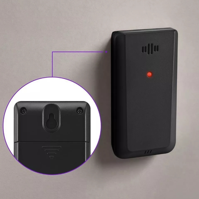 Контроль за показаниями не только дома Данная модель оснащена одним датчиком для получения показаний температуры и влажности на улице. Датчик можно повесить на стену, для этого преудсмотрено отверстие для настенного крепления. Датчик работает от 2 батареек типа AAA (не входят в комплект).