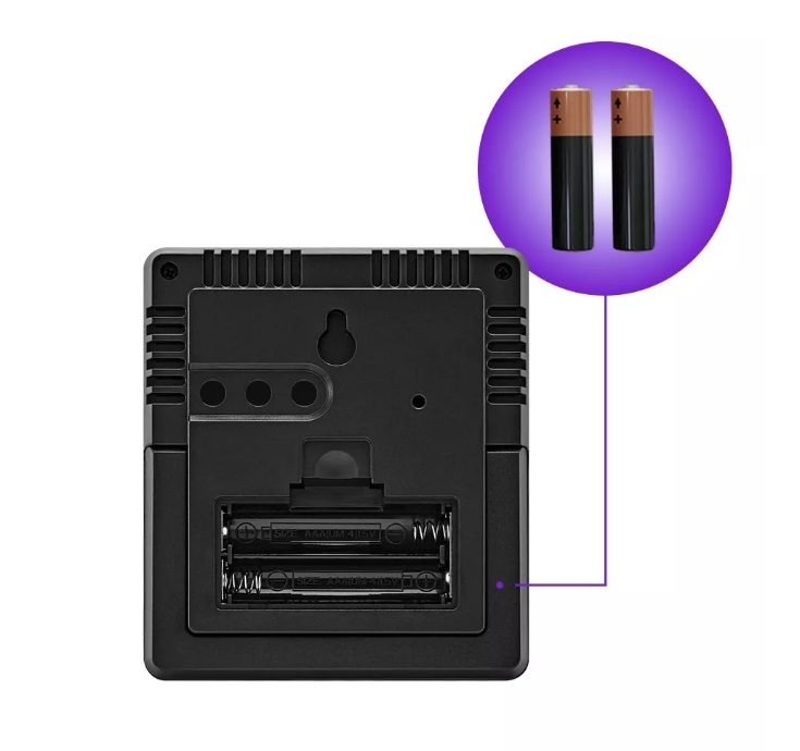 Беспроводная работа Комнатный термогигрометр работает от 2 батареек типа ААА (не входят в комплект). Благодаря питанию от батареек у устройства отсутствуют провода, поэтому его можно установить в любое удобное место.
