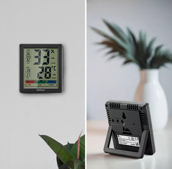 Универсальность и компактность Благодаря компактному размеру и стильному утончённому дизайну термогигрометр легко впишется в ваш интерьер. При своих небольших размерах термогигрометр может оказать большое влияние на создание комфортного и благоприятного для вас микроклимата!