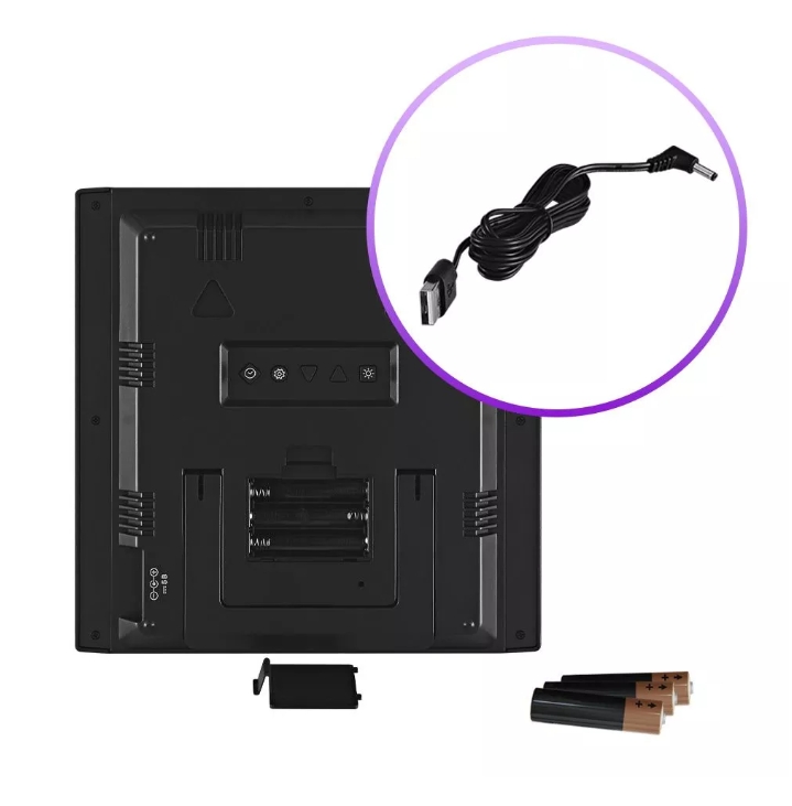 Работает от батареек или от шнура питания USB Часы могут работать как через шнур питания USB, подключённый к розетке через адаптер (в комплект не входит) или например, к компьютеру или пауэрбанку, так и от 3 батареек типа ААА благодаря чему их можно расположить в любом удобном для вас месте.
