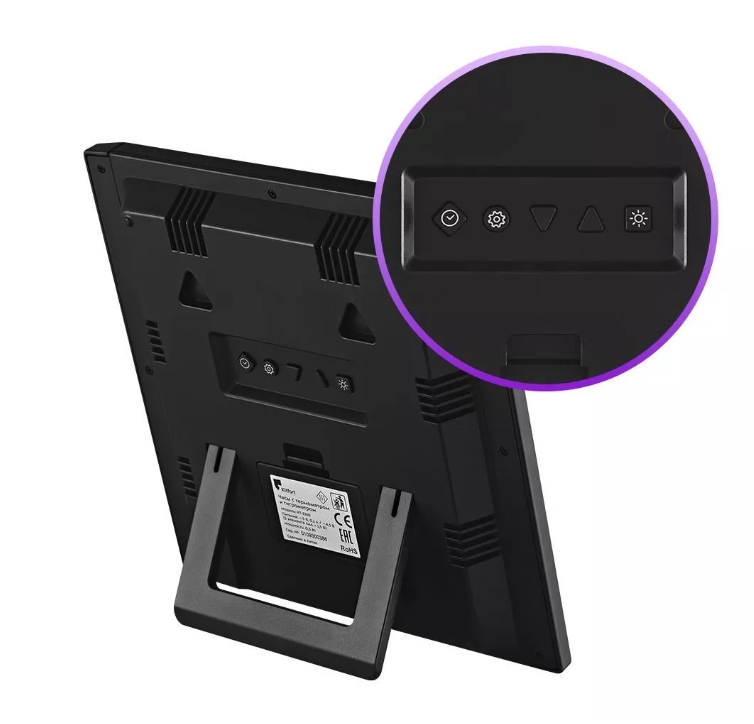 Удобное управление Благодаря складной ножке вы можете установить часы на горизонтальной поверхности. Кнопками с обратной стороны переключается 12-часовой или 24-чаовой формат времени. Также вы можете установить точное время или изменить яркость дисплея.