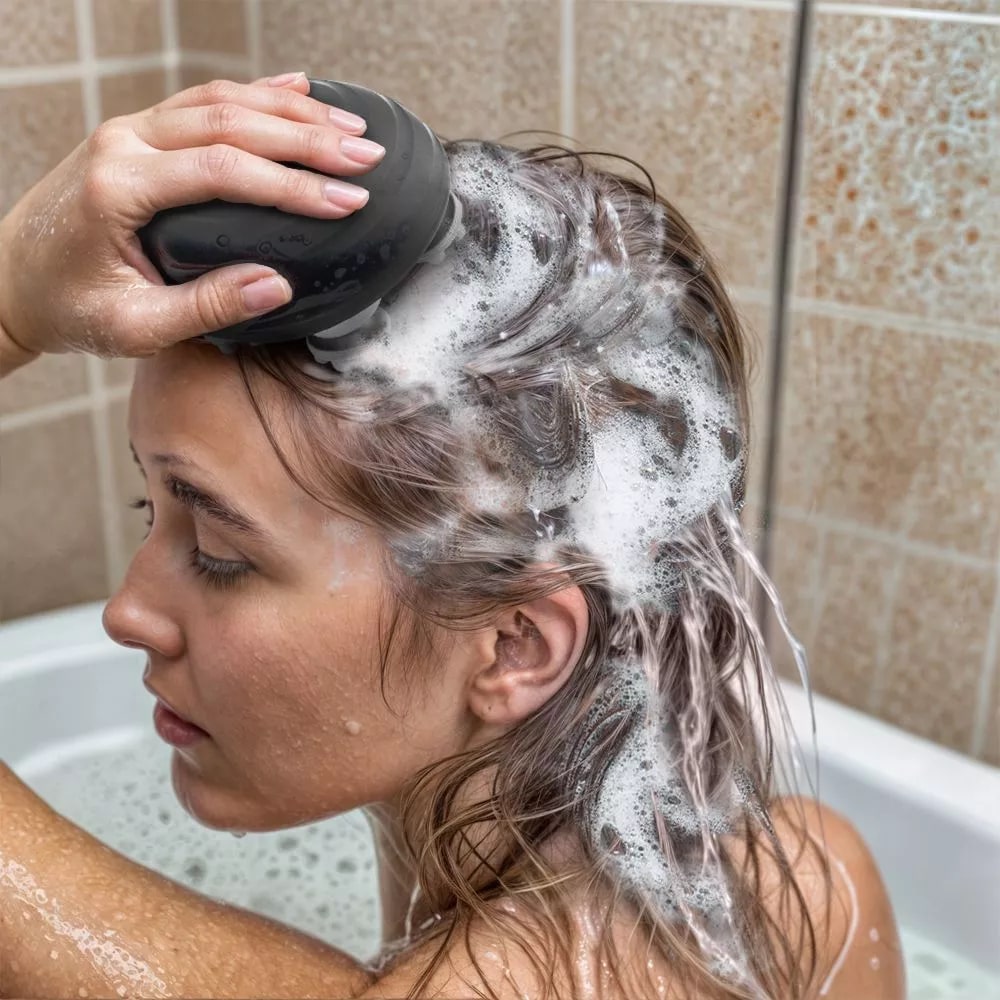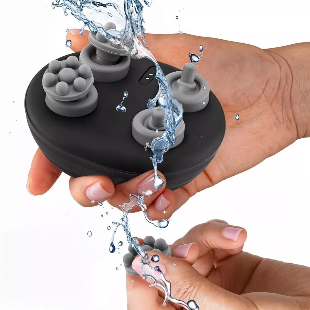 | Особый уход за волосами Также массажёр можно использовать для нанесения шампуней, масок, мягких пилингов и скрабов на кожу головы. Не погружайте массажёр в воду, не помещайте его под струю воды. |