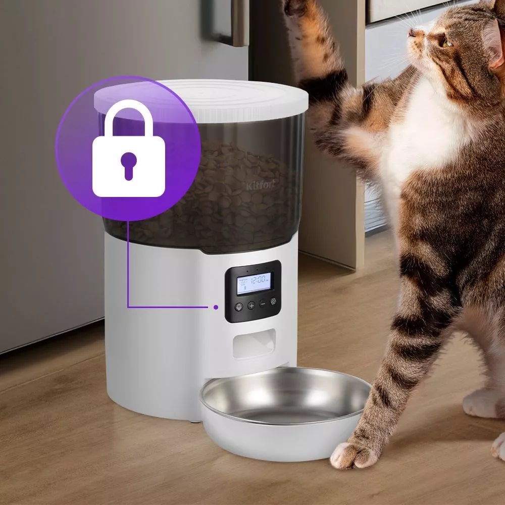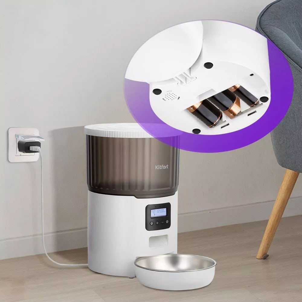 Умная кормушка для животных КТ-6362 позволяет установить расписание кормления для питомца во время вашего отсутствия. Подходит для кошек, собак мелких и средних пород.