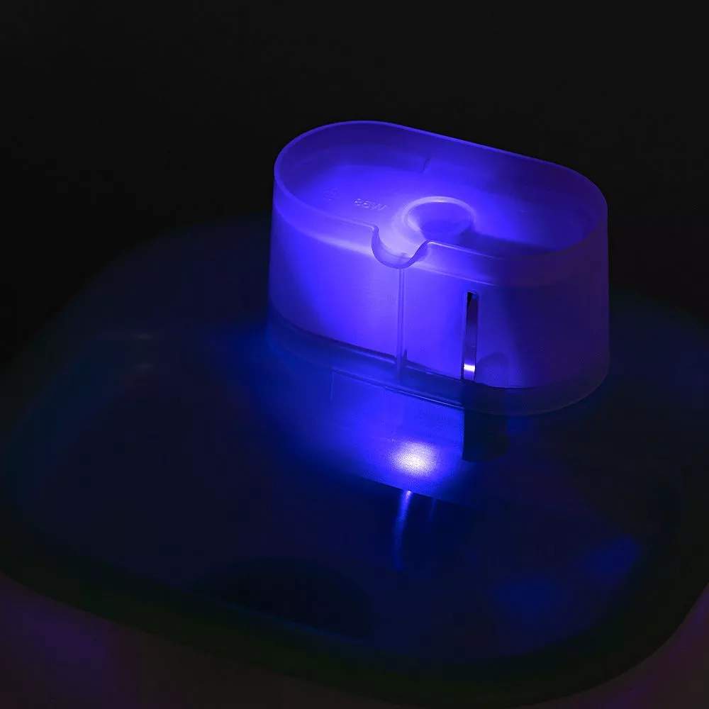 Светодиодная подсветка Резервуар для воды подсвечивается светодиодом на насосе, поэтому даже в темноте вы увидите устройство и не заденете его. Подсветку можно отключить при желании. Полупрозрачные стенки резервуара и распределителя удобны для отслеживания уровня воды.