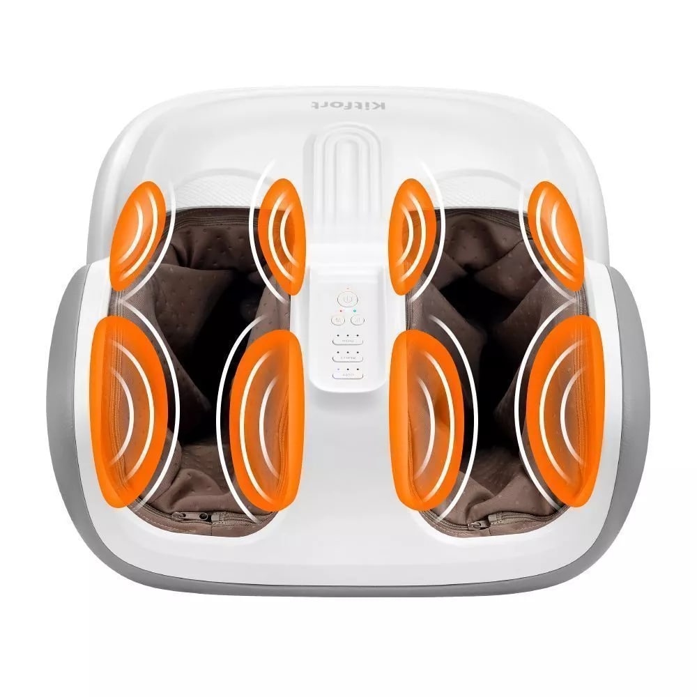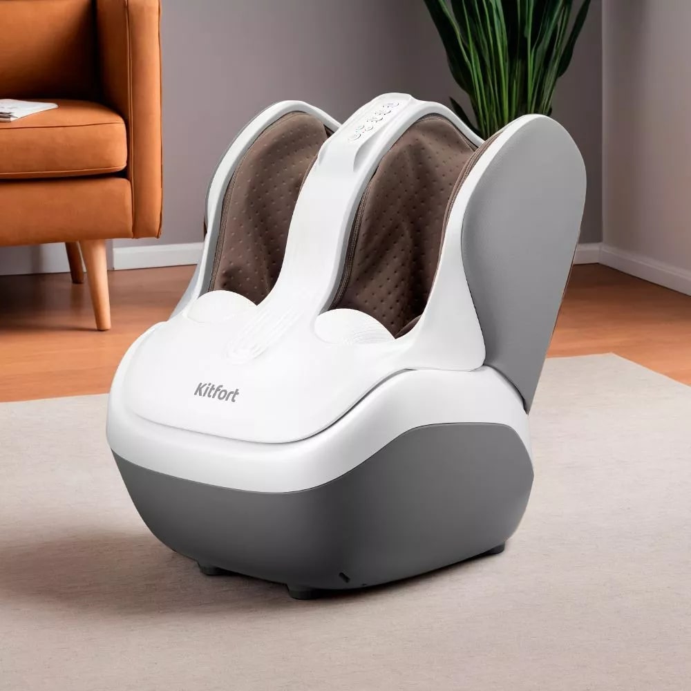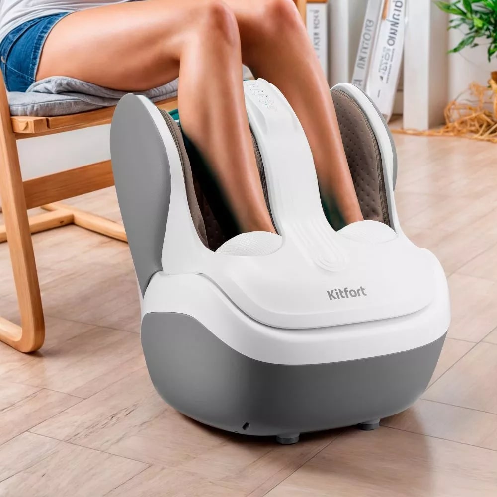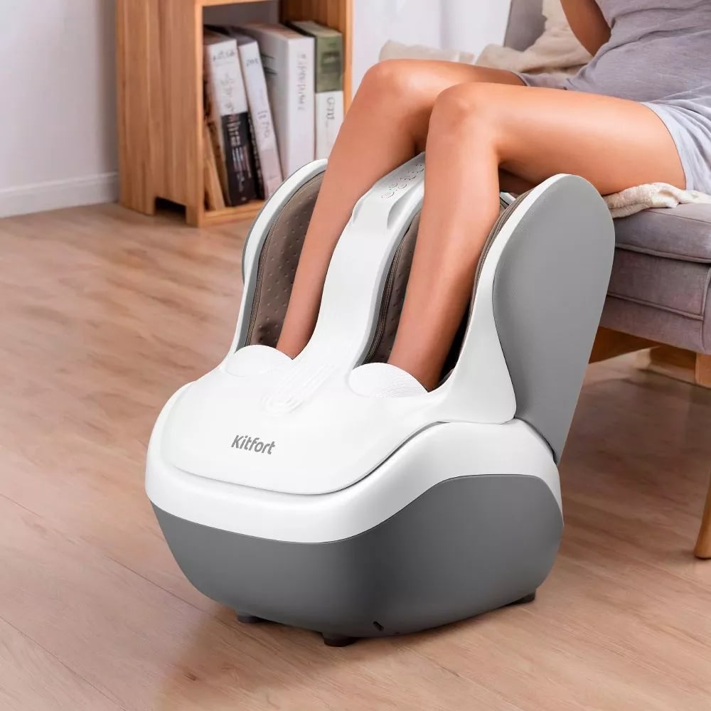 Волшебное искусство отдыхать! Массажёр для ног KT-2975 выполнит массаж ваших ног и избавит их от усталости. Прибор сочетает в себе воздушно-компрессионный, вибрационный и роликовый массаж, а также нагрев. Все функции можно использовать по отдельности или комбинируя друг с другом. |  |