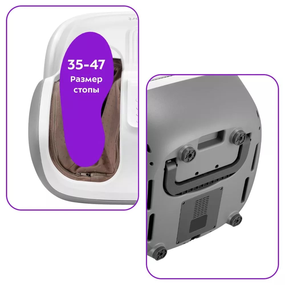 Эффективный роликовый массаж Роликовый массаж в сочетании с вибрационным позволяет размять, а также расслабить мышцы более эффективно, чем вибрационный массаж. Прибор массирует стопы и икры благодаря колебаниям различной интенсивности. |  |