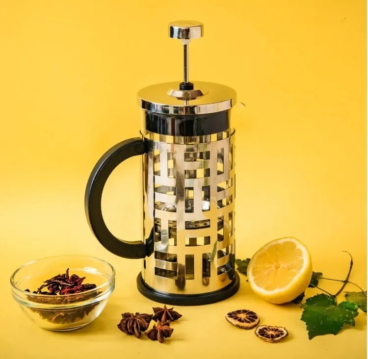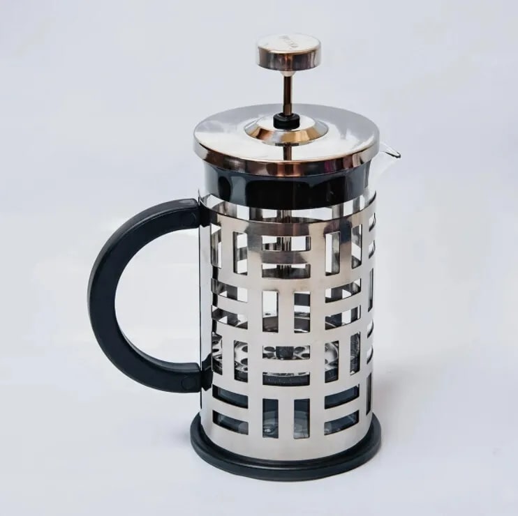 Френч-пресс Kelli объемом 0,35 литра. Корпус френч-пресса выполнен из нержавеющей стали, а колба — из термостойкого стекла. Данные материалы повсеместно используются в производстве посуды и отличаются прекрасными потребительскими свойствами. Прозрачная колба — напиток заваривается прямо у вас на глазах. Наличие фильтра-поршня — обеспечивает равномерную циркуляцию воды. Эргономичная ручка — френч-пресс удобно держать в руках. Особая форма носика — предотвращает образование подтеков.