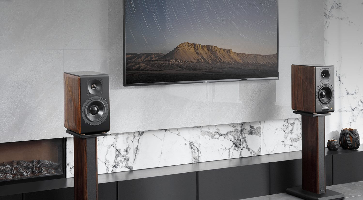 S3000MKII состоит из двух активных колонок, соединенных по беспроводной связи. Акустическая архитектура каждой колонки состоит из одного рупорного планарного твитера (107 мм x 107 мм) и одного 6,5-дюймового длинноходного среднечастотного динамика. Управляемая двумя стереофоническими усилителями PurePath™ Ultra-HD класса-D TI мощностью 175 Вт, акустическая система способна выдавать 256 Вт (RMS) общей выходной мощности. Благодаря профессиональной схеме обработки звука, частотная характеристика охватывает диапазон от 38 Гц до 40 кГц, а SNR (отношение сигнал/шум) превышает 85 дБ(A).
