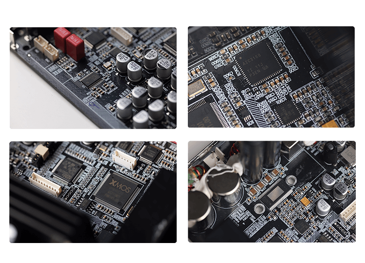 Для комплексной обработки цифрового звука мы используем самые передовые чипсеты от Texas Instruments и XMOS XU216. Все основные модули поддерживают аудиосигналы высокого разрешения не менее 24 бит/96 кГц. Конструкция схемы обеспечивает обработку сигнала без задержек, низкий уровень искажения во всем звуковом диапазоне и превосходное качество звука. * АЦП (аналого-цифровой преобразователь): До 24 бит/192 кГц * DSP (цифровой сигнальный процессор): До 24 бит/192 кГц * DIX (Цифровой интерфейсный трансивер): До 24бит/216кГц * ЦАП (цифро-аналоговый преобразователь): До 32бит/384кГц * XMOS XU216: До 2 000 MIPS вычислительной мощности и 24 бит/192 кГц
