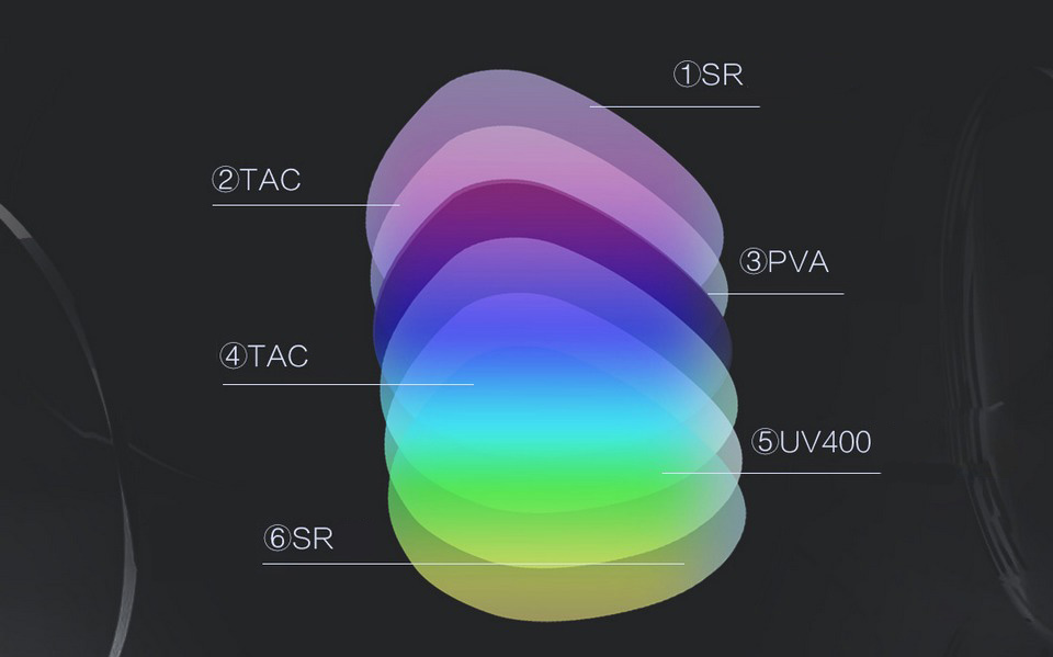 | Нейлон — устойчивый к солнечному свету кристаллический материал, который очень широко используется в авиа- и автомобилестроении, а также изготовлении бронестёкол. Он не рассеивает свет, а также обеспечивает полную защиту от ультрафиолета типов А и В. При этом линза, выполненная из нейлона, заметно лучше, чем стеклянная линза с напылением. |
