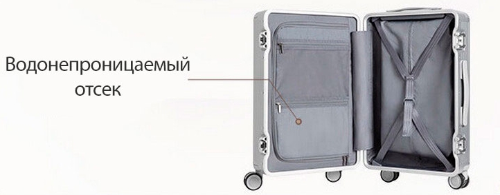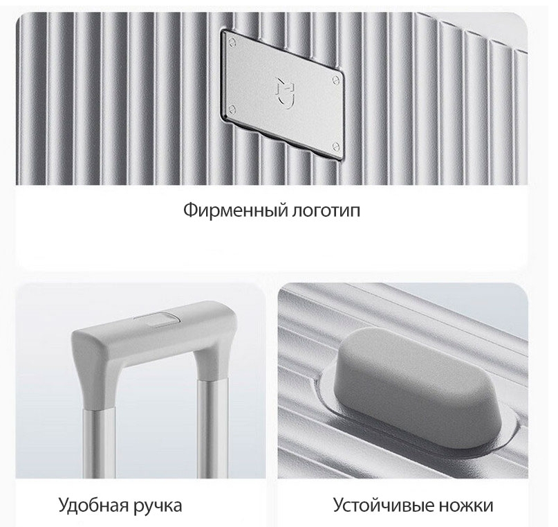 Чемодан Xiaomi Metal Luggage 24 Дорожный чемодан от Xiaomi отличается прочностью, благодаря алюминиевой раме и ограждениям на углах из цинкового сплава, что обеспечивает его устойчивость. Замки TSA в двух экземплярах, высокопроизводительный ПК-композит и универсальные колеса с точным ходом и антибактериальным покрытием дополняют его характеристики. Внутреннее пространство чемодана организовано так, чтобы обеспечить удобное хранение: U-образные сумки и X-образные ремни подходят для размещения различных предметов. Кроме того, водонепроницаемая сумка-отделение позволяет хранить влажную одежду отдельно, сохраняя ее чистой и гигиеничной.