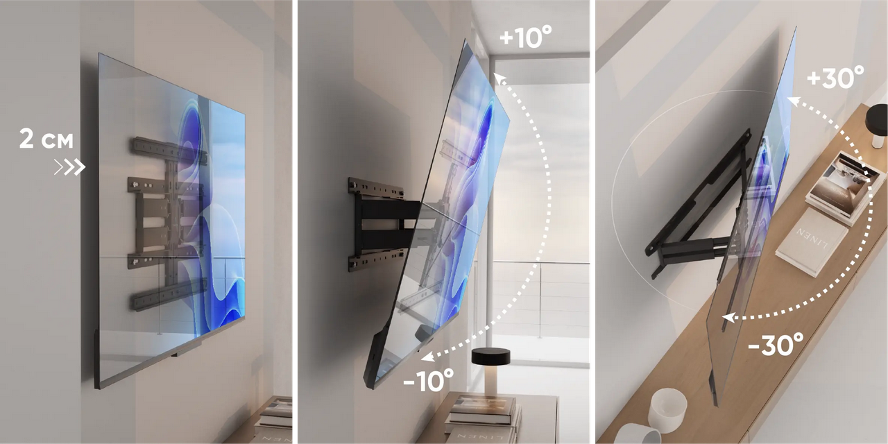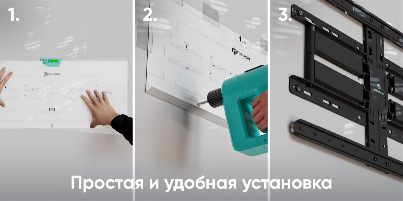 Наклонно-поворотный кронштейн для ТВ 32” – 90” весом до 40 кг, чёрный ONKRON SM2 УНИВЕРСАЛЬНЫЙ НАСТЕННЫЙ КРОНШТЕЙН: ONKRON SM2 – наклонно-поворотный настенный кронштейн для установки ТВ диагональю от 32” до 90” до 40 кг с VESA 200x200 - 600x400 ТОЧНАЯ РЕГУЛИРОВКА: наклон экрана настраивает от -10° до+10°, поворот влево и вправо – в диапазоне 60°. Благодаря продуманной конструкции минимальный отступ от стены составляет всего 2 см, а максимальный – 24.5 (3/4” – 9 5/8”). Кронштейн пригодится дома, в офисе или в общественном пространстве. Идеально подходит для установки ТВ в нишу УДОБСТВО: множество вариантов регулировки позволит добиться наибольшего комфорта просмотра ТВ. Благодаря кронштейну вы сможете ограничить доступ к экрану для детей и животных, а также освободите полезное пространство под ним ПРОДУМАННАЯ КОНСТРУКЦИЯ: кронштейн изготовлен из высококачественной стали. Благодаря телескопическим плечам кронштейн в сложенном виде почти не заметен в интерьере. В комплекте идет пузырьковый уровень и монтажный шаблон. Лента для кабель-менеджмента позволит аккуратно скрыть все провода. |