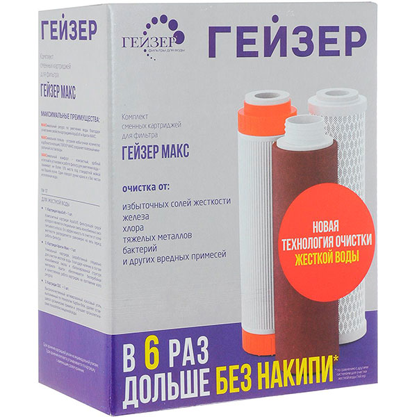 Комплект Гейзер «№ 17» предназначен для замены исчерпавших свой ресурс картриджей в стационарных трехступенчатых фильтрах Гейзер «Макс» для сверхжесткой воды. В набор входят 3 картриджа. Картриджи также совместим с другими трехступенчатыми системами Гейзер и системами других производителей стандарт 10SL (Slim Line). В набор входит уплотнительная муфта типа «И».