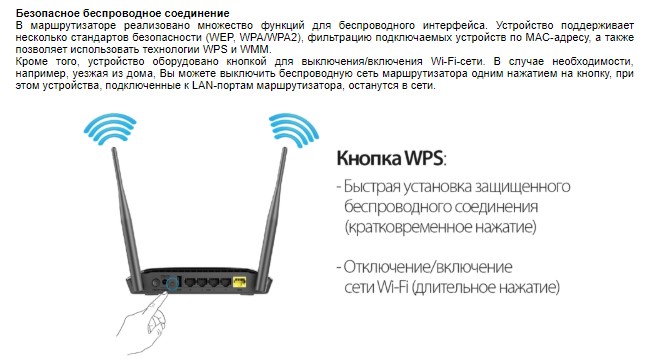 - Кнопка WPS для установки беспроводного соединения и включения/выключения беспроводной сети