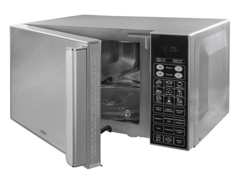 Современная и вместительная микроволновая печь проста в управлении и довольно функциональна. Зеркальная передняя панель, LED-дисплей и электронное управление – вот составляющие стильного и лаконичного дизайна современной техники для кухни. Объем камеры составляет 23 литра. Существует 11 уровней регулировки мощности микроволн, максимальная – 900 Вт. Помимо привычных автоматических программ приготовления и размораживания блюд по весу, есть комбинированный режим, который заключается в использовании микроволн и гриля и подходит для приготовления больших кусков мяса или рыбы. Функция «Конвекция» позволит заменить духовку на микроволновую печь, если захочется полакомиться пирогами или бисквитом. Функция блокировки панели управления ограничит доступ ребенка к технике. Предусмотрена функция удаления запахов.