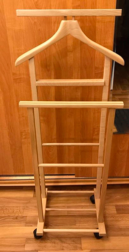 Напольная вешалка TET-A-TET LUX, выполненная из натурального дерева бук, позволит сохранить опрятный внешний вид вашего костюма. Вешалка снабжена плечиками для пиджака и рубашки, большой перекладиной для брюк и подставкой для сумок. Благодаря колесикам легко перемещается в нужное вам место. Размер 46×107×30 cм. | ![]() |