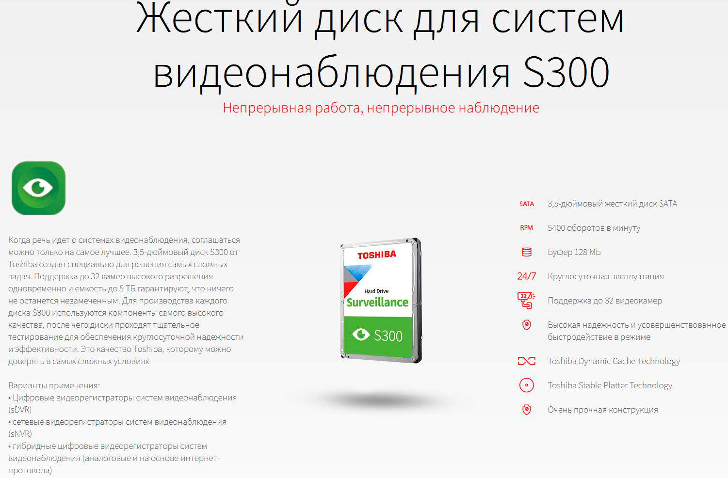 • Жесткий диск Toshiba S300 1Tb HDWV110UZSVA