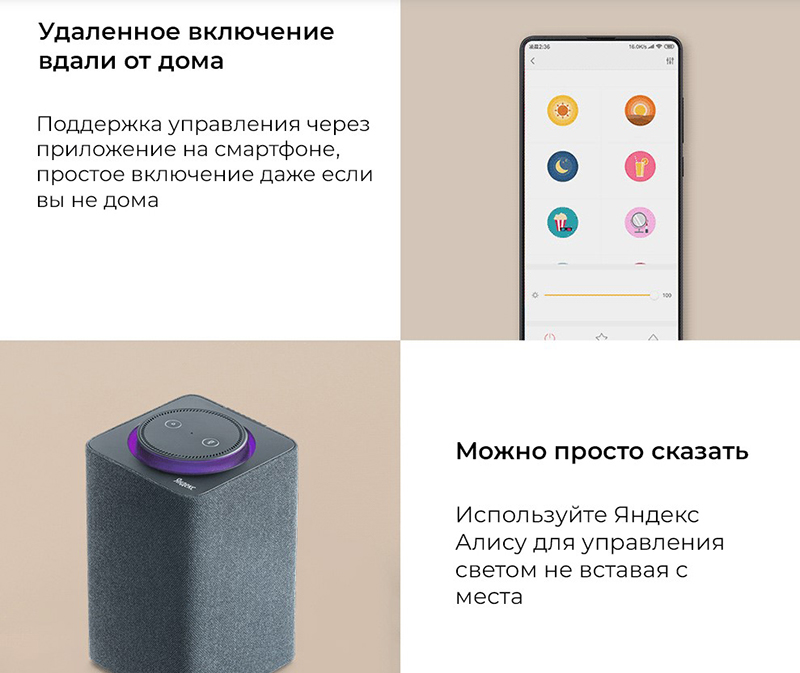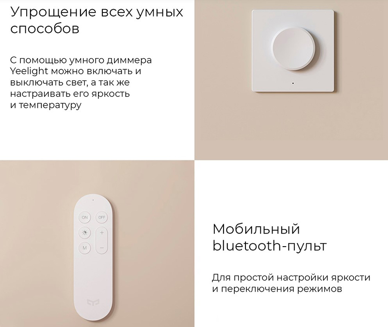 | Поддержка умной регулировки Удобные способы умного управления Самые частые функции светильника можно вынести на настенный выключатель, а с помощью поворотов и нажатий можно управлять режимами свечения, регулировать его яркость и температуру. С помощью приложения на смартфоне можно даже вдали от дома управлять всеми умными устройствами. Еще до возвращения домой можно включить свет и другие устройства. Удобный пульт позволяет свободно настраивать свечение любого светильника в каждом отдельном помещении. Он выполнен в едином стиле с потолочным светильником Yeelight и прекрасно вписывается в общую композицию. |