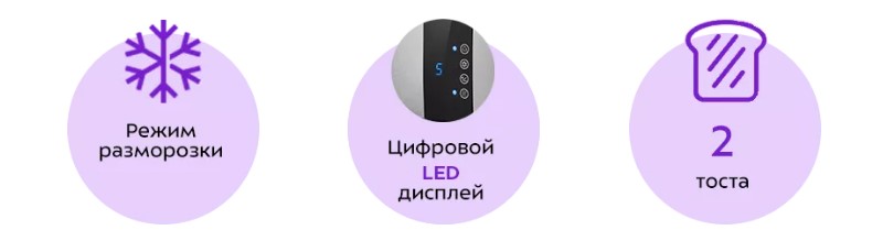 ![]() | Особый вкус и цвет!Благодаря 7 степеням поджаривания вы можете приготовить горячие тосты на любой вкус и из любых видов хлеба. |
