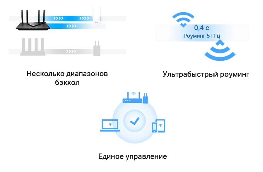 - OneMesh™ позволяет создать более гибкую сеть во всём доме с помощью устройств TP-Link OneMesh™ без необходимости замены текущих устройств или покупки новой Wi-Fi экосистемы