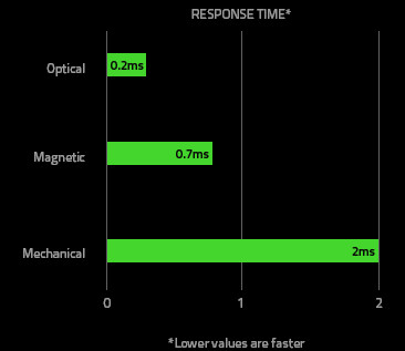 - Razer™ Clicky Optical Switch (Purple): щелкающие тактильные оптические переключатели