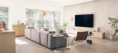 Почувствуйте сверхширокий пространственный звук 360 Spatial Sound Сверхширокая зона прослушивания достигнет каждого уголка вашего жилого пространства Члены вашей семьи и друзья получат одинаковые впечатления от звука, независимо от того, где в комнате находятся. Зона прослушивания не ограничена передней панелью телевизора, а охватывает гораздо более широкую область. Универсальная схема расположения подходит для любой гостиной Не нужно делать перестановку мебели или выверять расположение динамиков. В каждом динамике HT-A9 используется двойной микрофон, который изобретательно измеряет относительную высоту и расположение, а система создает двенадцать фантомных динамиков и полностью окружает комнату объемным звуком с эффектом погружения. | |