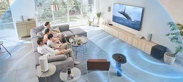 Пространственный звук 360 Spatial Sound адаптируется к обстановке Революционная технология 360 Spatial Sound Mapping создает до двенадцати фантомных динамиков, используя всего четыре реальных устройства. С системой 360 Spatial Sound вы ощутите себя так, будто очутились на съемках Фантомные динамики с нескольких сторон и оптимизированное звуковое поле позволят расслышать каждый взмах крыла и порыв ветра в полную силу. Как будто вы и ваша гостиная оказались внутри фильма. | |