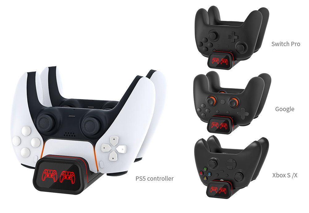 - Зарядная станция для контроллеров PS5/Xbox X/S/Switch Pro/Google