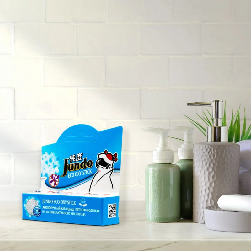 Jundo ECO OXY STICK карандаш-пятновыводитель на основе активного кислорода – универсальное и эффективное средство для выведения пятен любой сложности в домашних условиях. Активный кислород в составе пятновыводителя разрушает структуру пятна, деликатно и бережно относится к тканям, не повреждая волокна ткани. Подходит для хлопка, льна, шерсти, шёлка, а также для синтетических тканей. Эффективно удаляет сложные и въевшиеся пятна от тональных средств, помады, кофе, чая, вина, шариковой ручки, йода, зелёнки, крови, жирных пятен. Так же идеален для обработки воротников и манжетов перед стиркой.