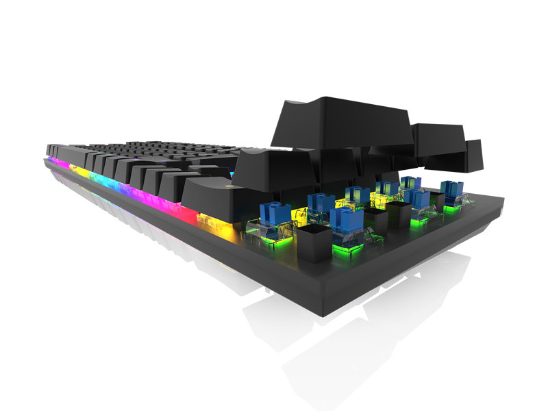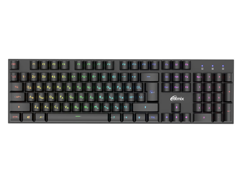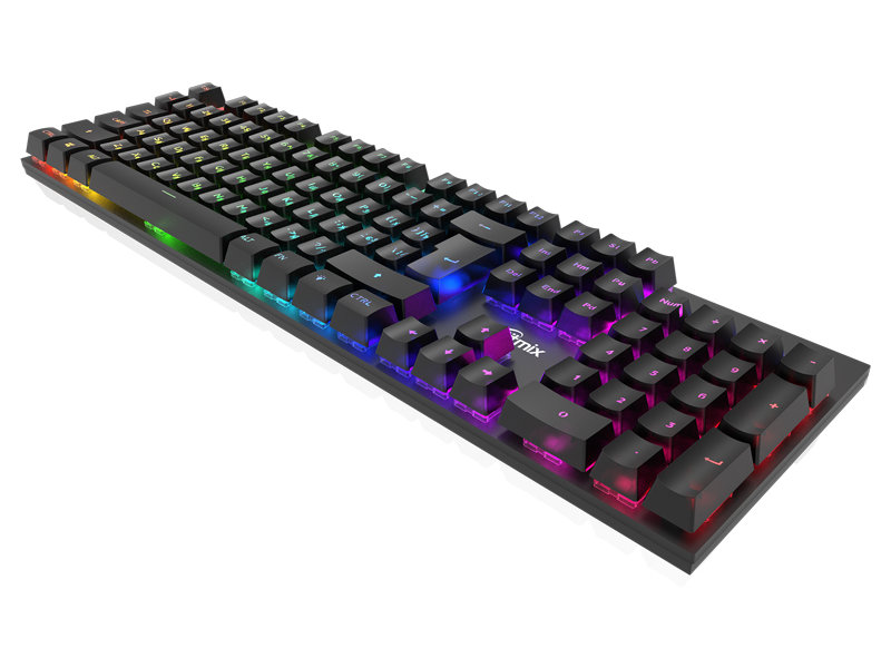 Проводная механическая клавиатура с классической раскладкой. Переключатели Blue обладают тактильным ударом и слышимым щелчком, оптимальный вариант не только для игры, но и для работы с текстом. Подключение по USB.
