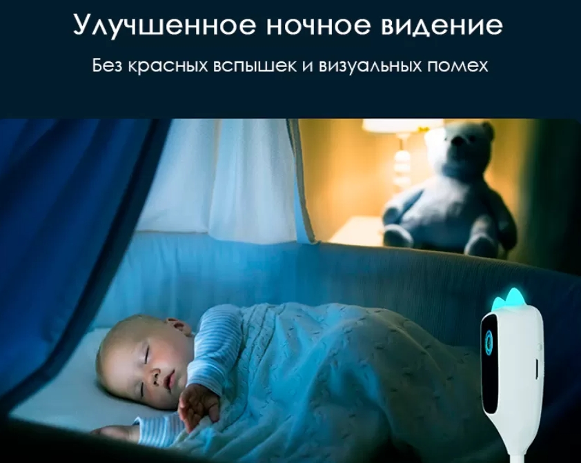 Модель получила функцию обнаружения движения и распознавания детского плача. Она подает предупреждающий сигнал в таких ситуациях, своевременно оповещая родителей о происходящем.