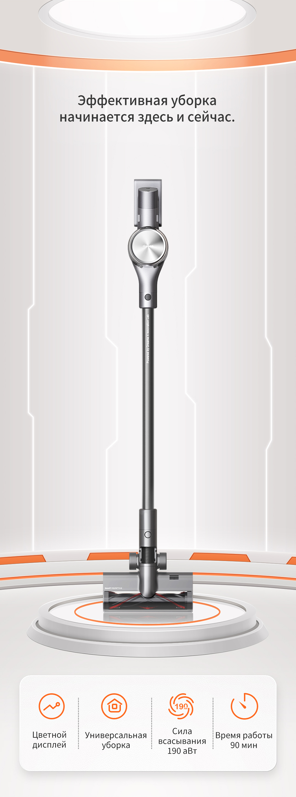 Беспроводной пылесос Dreame T30 Neo оснащен умным ЖК-дисплеем, который может отображать степень загрязнения очищаемого участка. В зависимости от уровня запыленности гаджет автоматически определяет режим работы. Максимальная мощность всасывания устройства составляет 190 аВт. Возможно до 90 минут автономной работы. Эффективная фильтрация, простое обслуживание, насадки – все для тщательной сухой уборки!